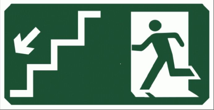 Placa Fotoluminescente Indicativa de Escada Desce a Esquerda.